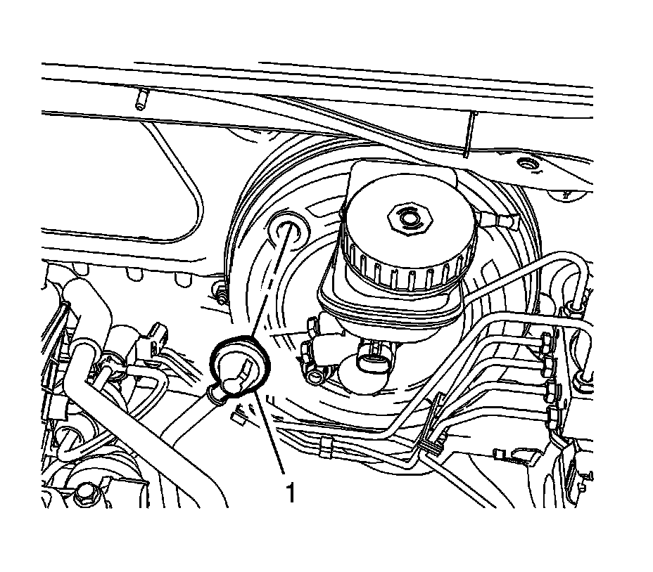 2. Disconnect the power brake booster check valve (1) from the power vacuum brake booster grommet.