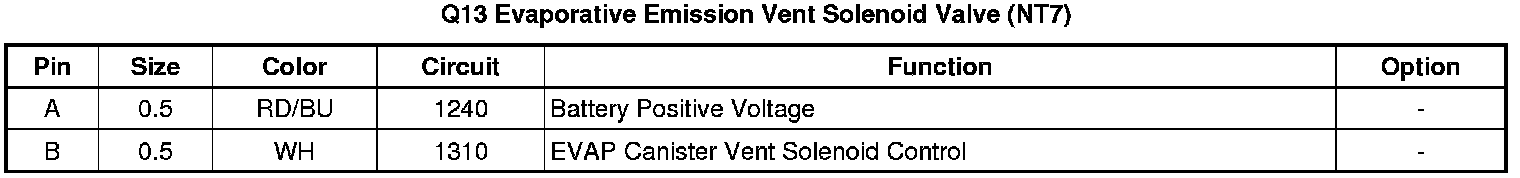 Q13 Evaporative Emission Vent Solenoid Valve (NT7)