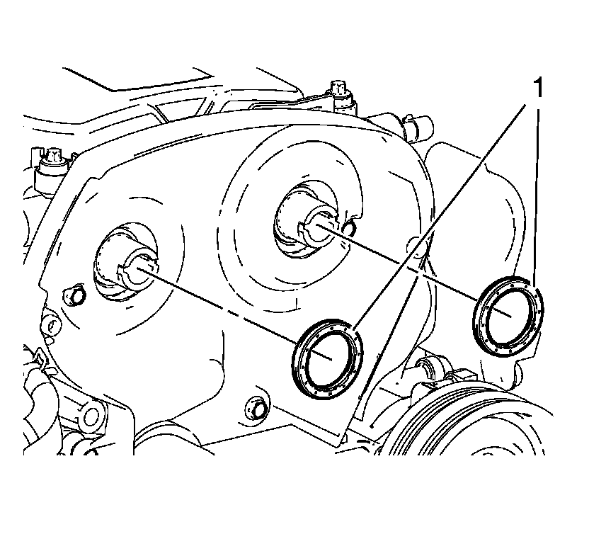 3. Remove the camshaft front oil seals (1).