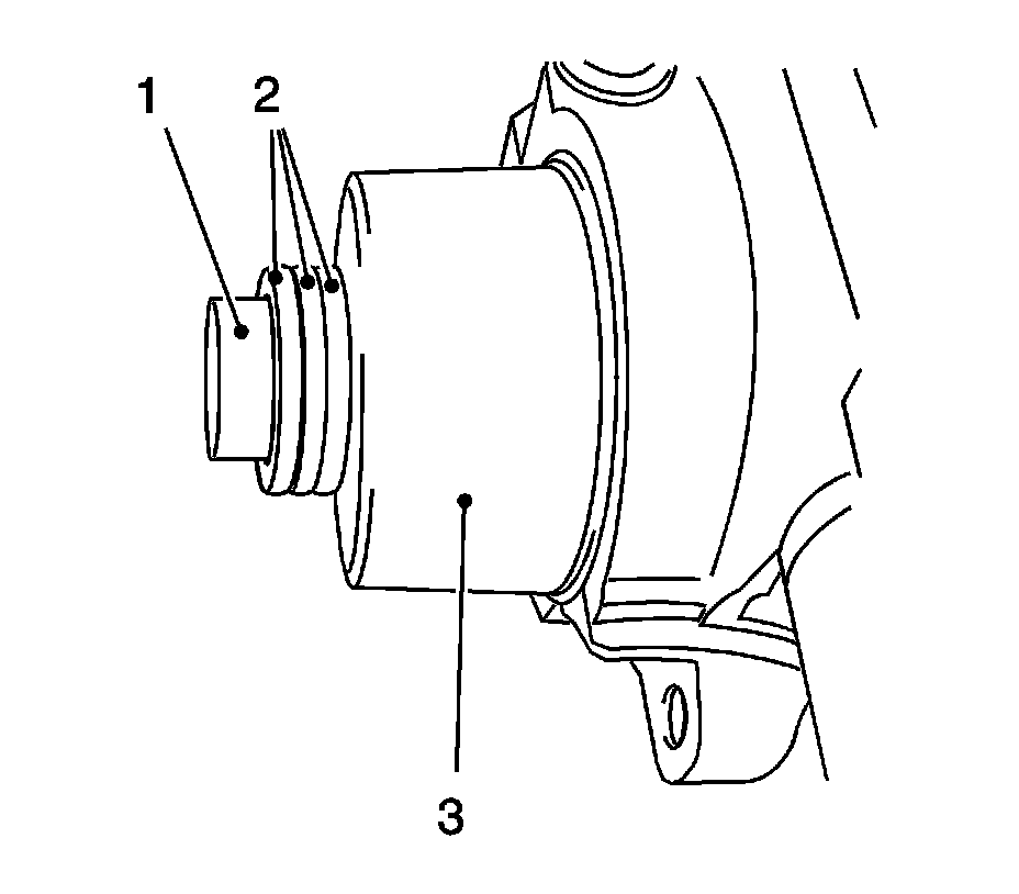 3. To install, use camshaft sprocket bolt (1) in conjunction with shims (2) with a total thickness of approximately 10 mm (0.393 in).
