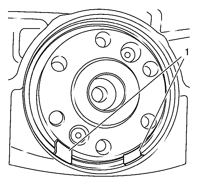 4. Remove the crankshaft position sensor reluctor ring (2).
