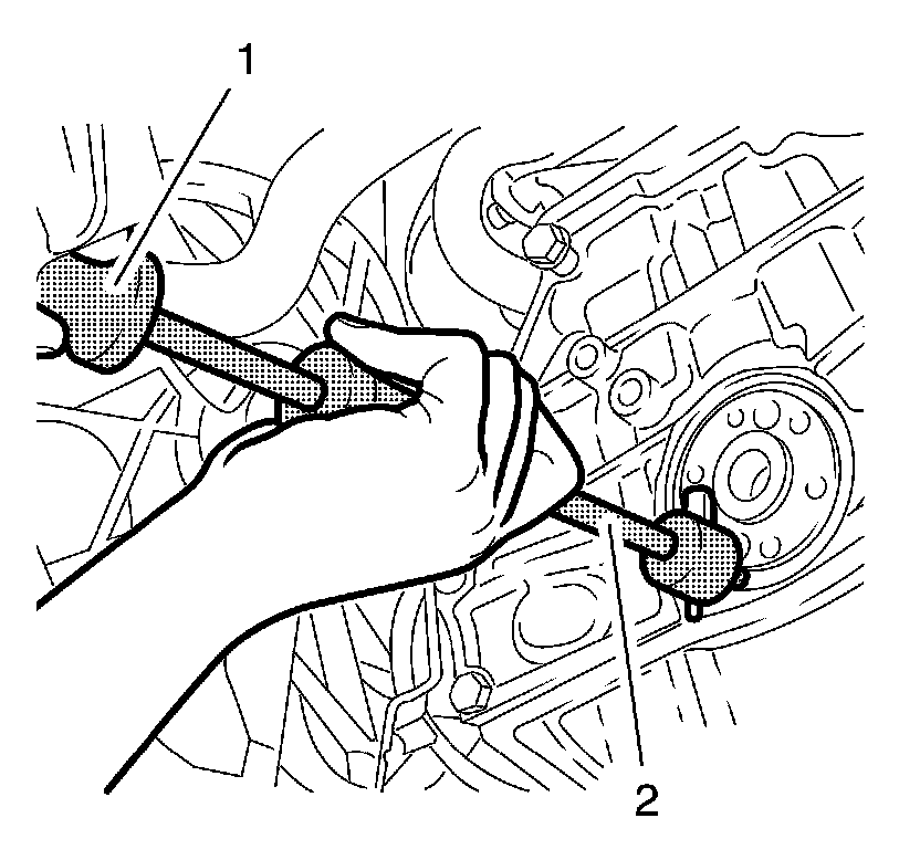 9. Install the EN-328-B - remover (1) to EN-6624 - remover (2) and remove the crankshaft rear oil seal.