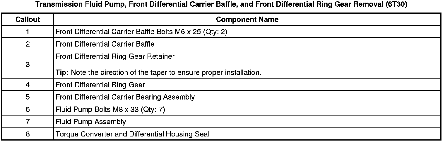 Transmission Fluid Pump, Front Differential Carrier Baffle, and Front Differential Ring Gear Removal (6T30)