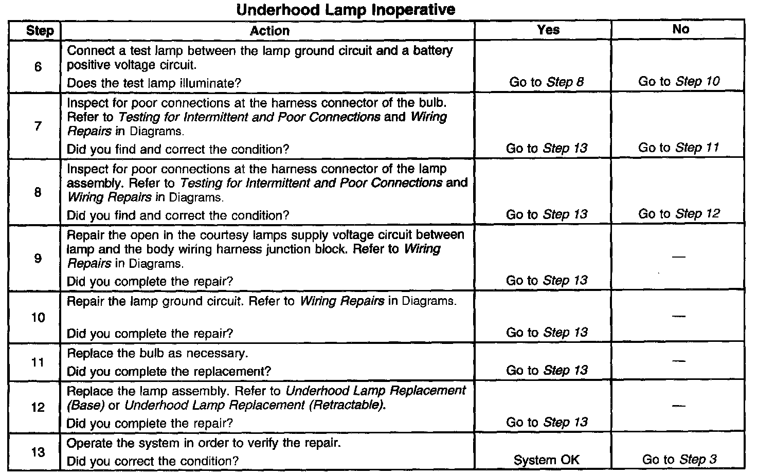 Underhood Lamp Inoperative
