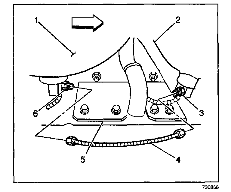 2. Connect the fuel line (4) to the rear tank high pressure lock-off fitting (6) using new O-rings. Lubricate the O-ring with petroleum jelly or equivalent before installation.