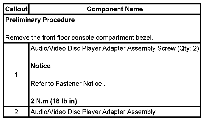 AUDIO/VIDEO DISC PLAYER ADAPTER REPLACEMENT (EXCEPT CADILLAC)