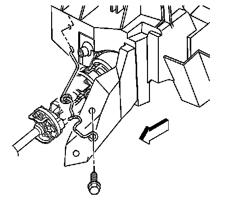 9. Install the transmission range selector cable support bolt to the I/P reinforcement brace.