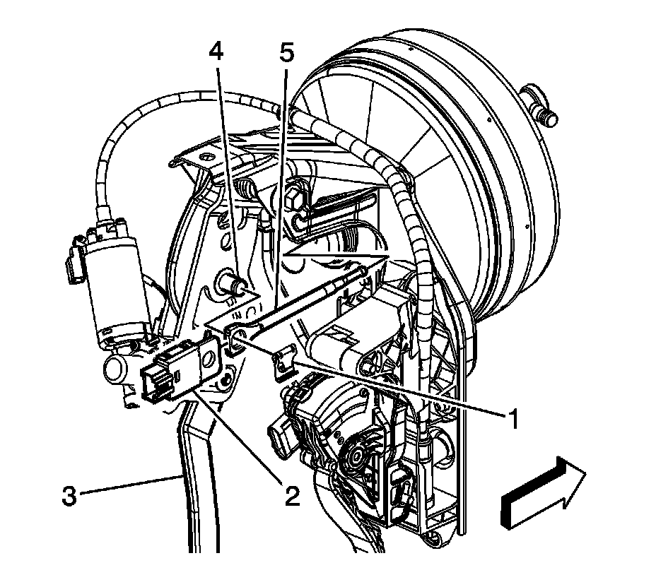 9. Remove the brake pedal pushrod (5) and the stop lamp switch (2) from the brake pedal (3).
