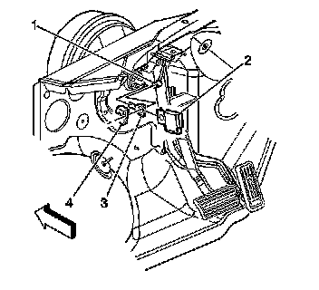 4. Install the pushrod (3) and the stop lamp switch (2) to the brake pedal pin (1).