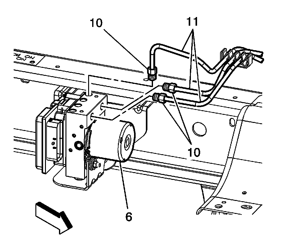 Important: Note the location of the brake pipes to the BPMV for proper installation.