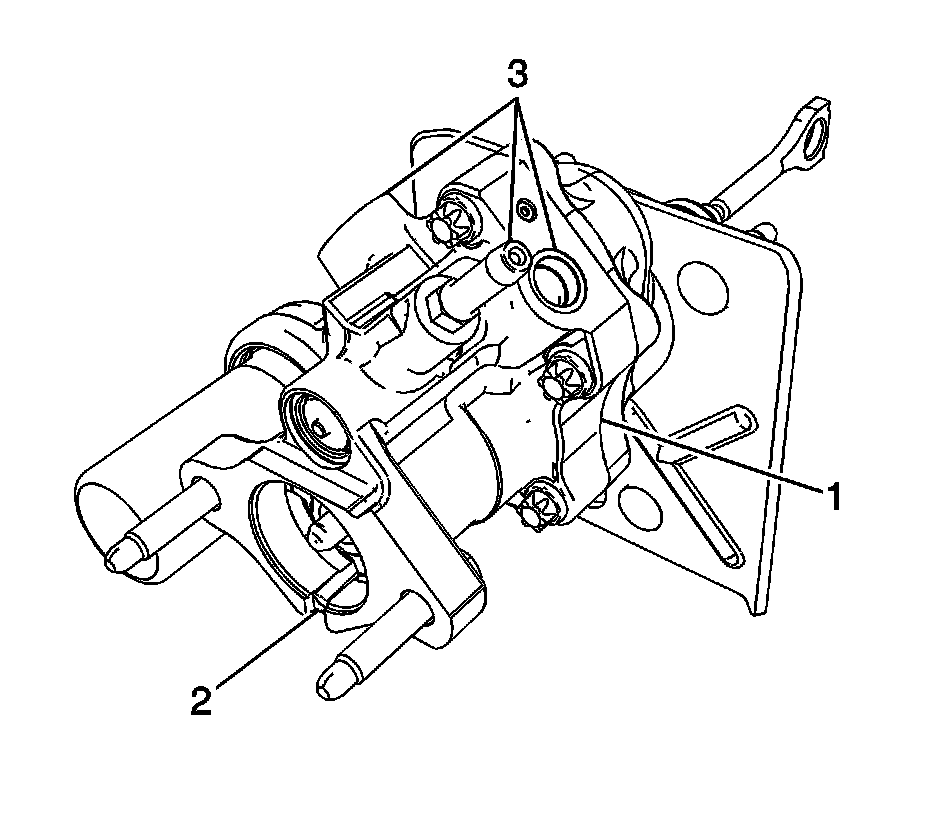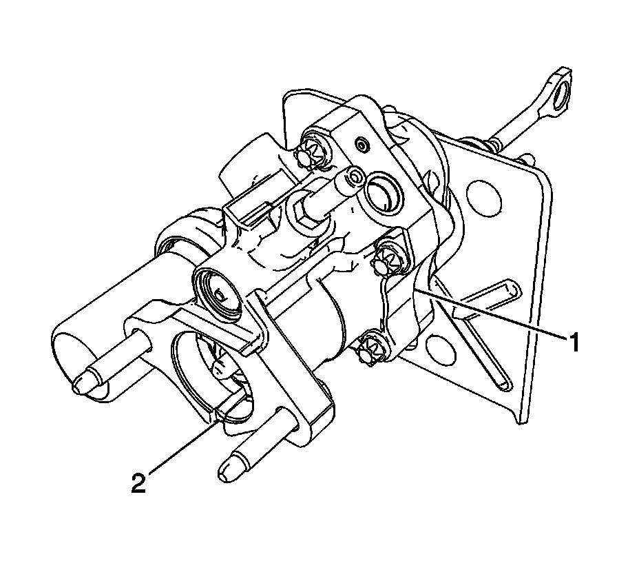 Important: A leak between the power steering brake booster 2 and the master cylinder is not acceptable. If a leak is present, the type of fluid must be determined. Power steering fluid indicates that the power brake booster needs to be replaced. Brake fluid indicates an issue with the brake master cylinder.