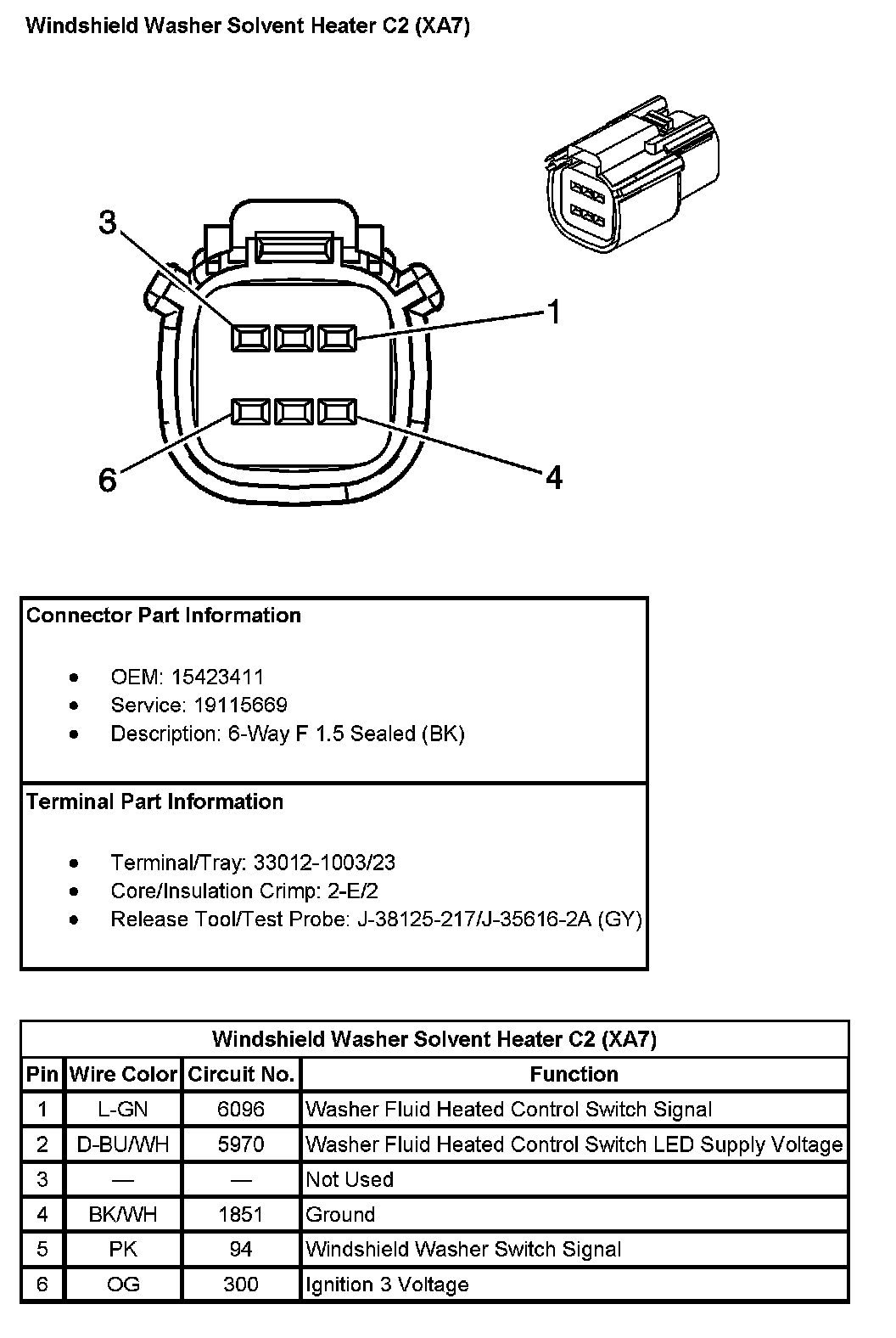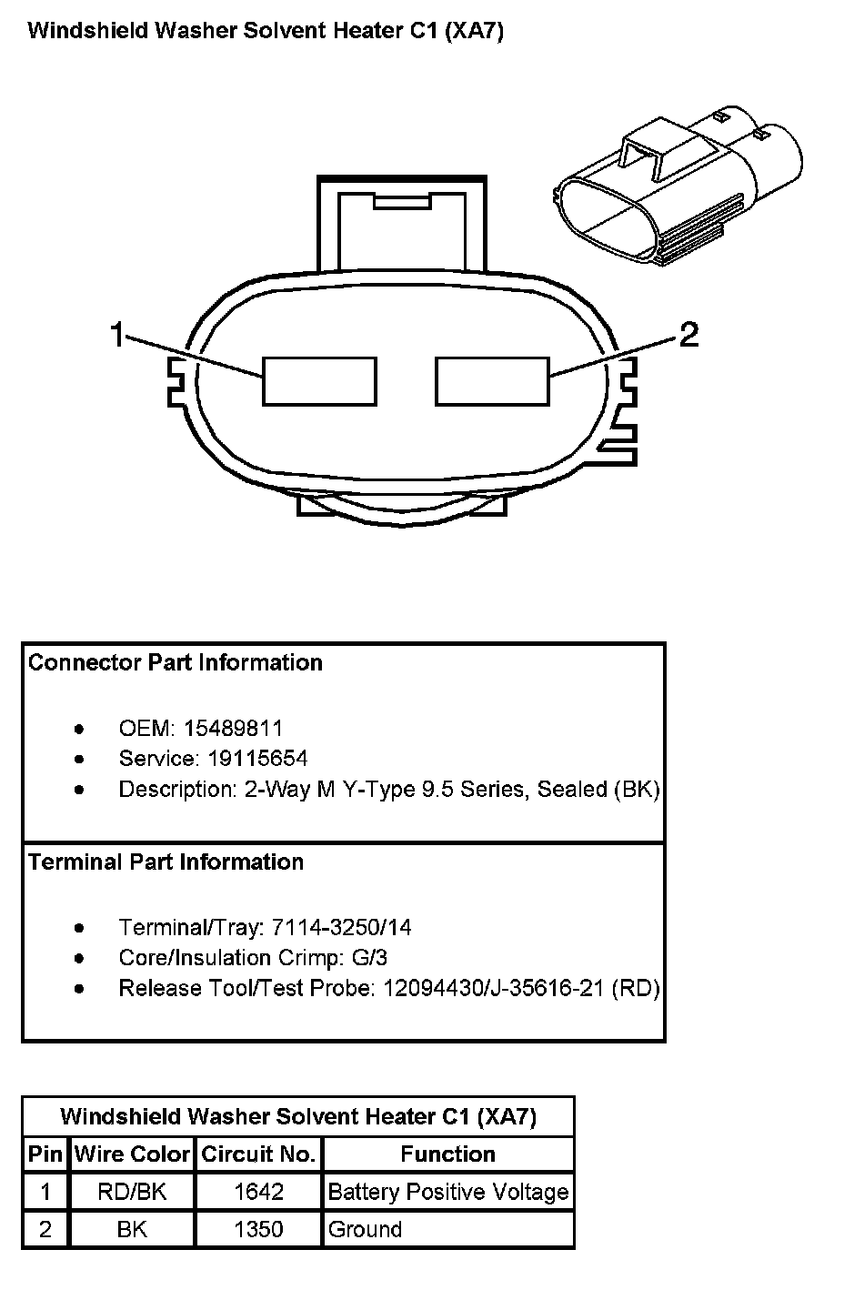 Windshield Washer Solvent Heater C2 (With RPO Code XA7):