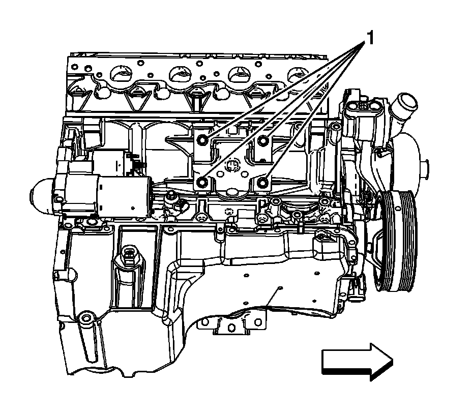 Notice: When raising or supporting the engine for any reason, do not use a jack under the oil pan, any sheet metal, or the crankshaft pulley. Due to the small clearance between the oil pan and the oil pump screen, jacking against the oil pan may cause the pan to be bent against the pump screen. This will result in a damaged oil pickup unit.