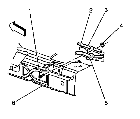 Install the heater/A/C tubes retaining nut (4) to the stud (1) at the frame (6).