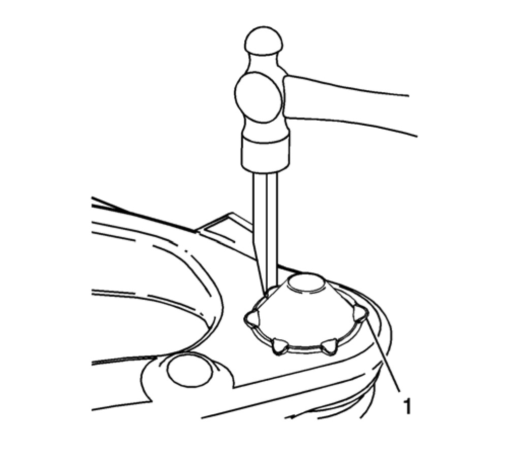 4. Using a hammer chisel, remove the locking tabs (1) from the ball joint body.