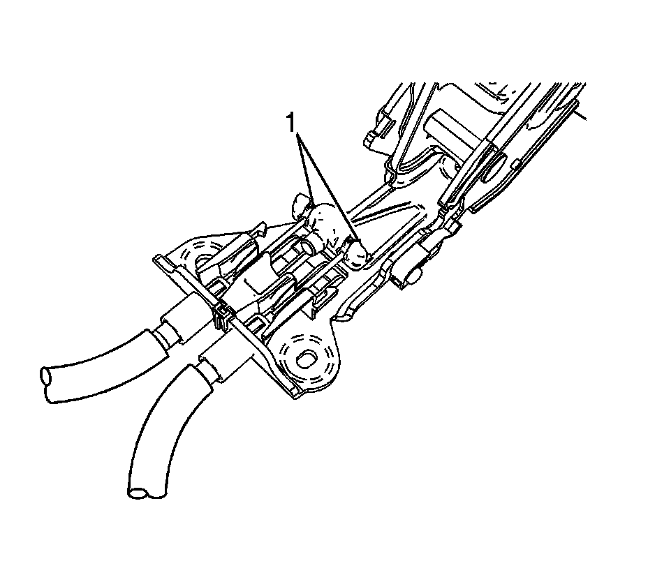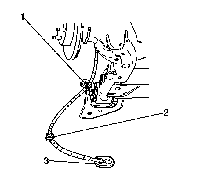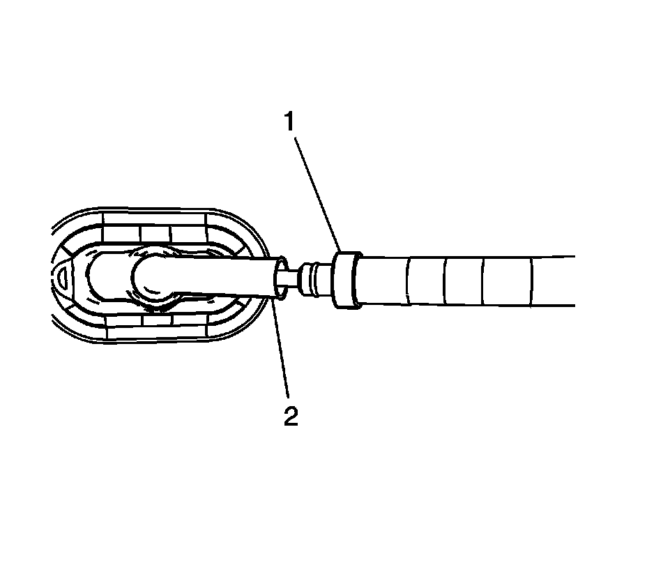 7. If a new park brake cable will be installed, release the underbody retainer (2) from the vehicle underbody.