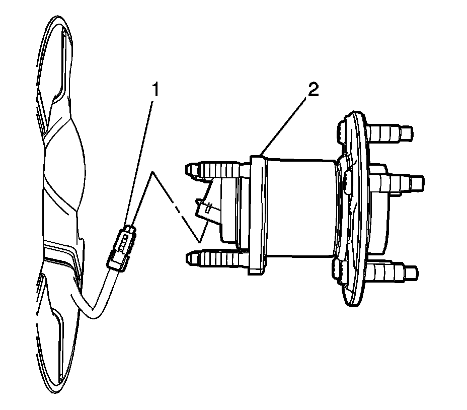 1. Reconnect the wheel speed sensor electrical connector (1) to the wheel bearing/hub assembly (2).