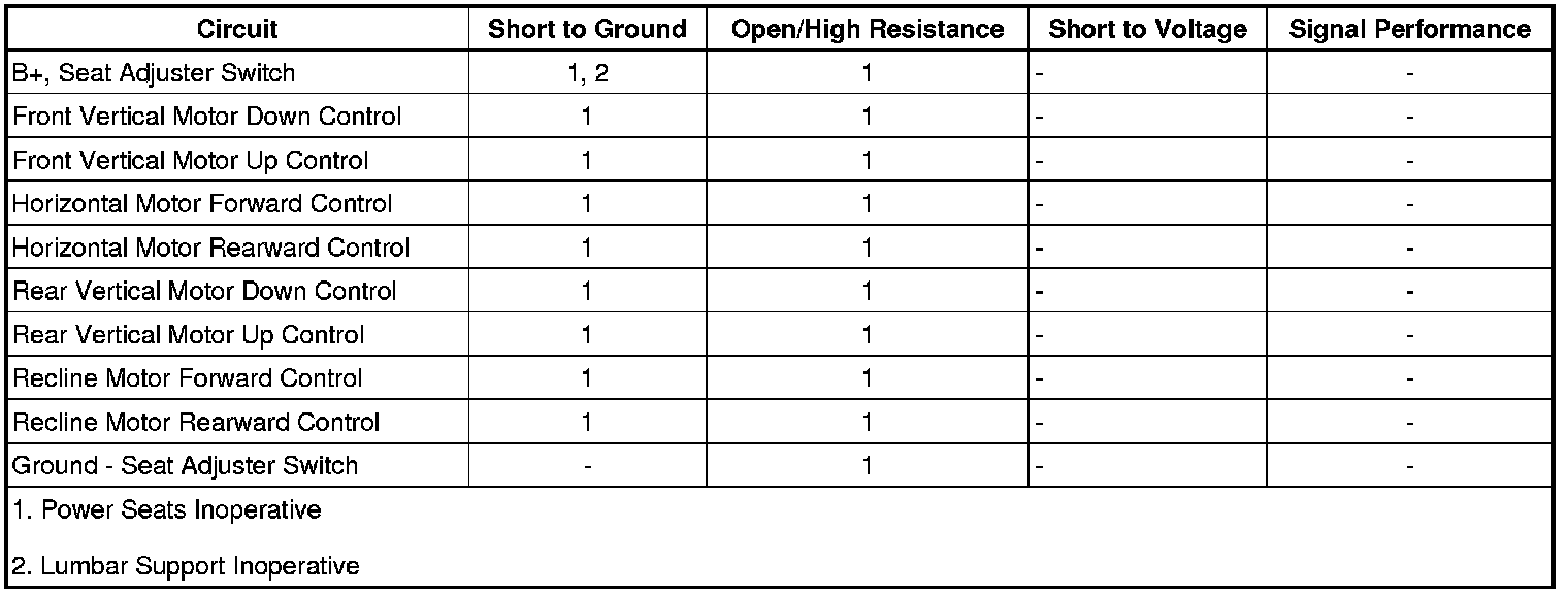 4. If all circuits test normal, test or replace the seat adjuster switch.