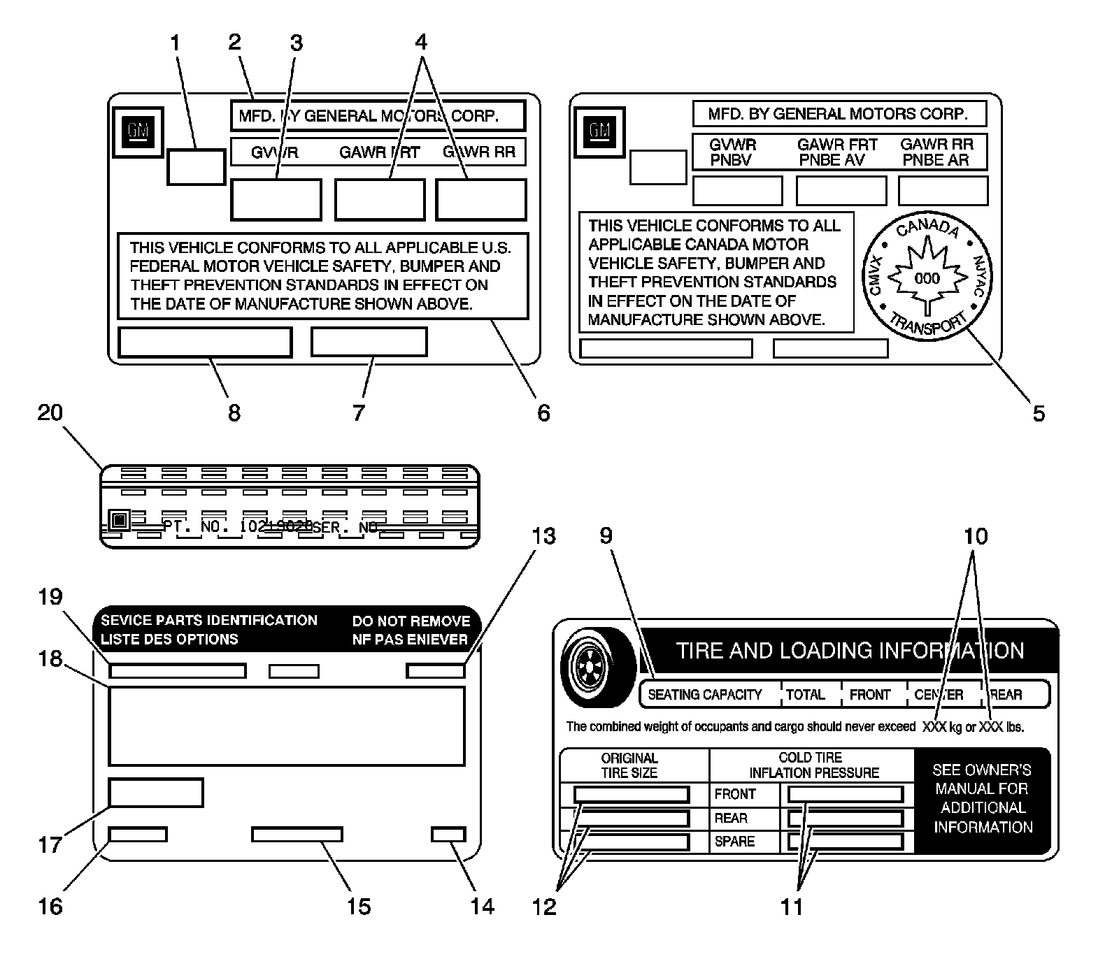 Vehicle Certification, Tire Placard, Anti-Theft, and Service Parts ID Label