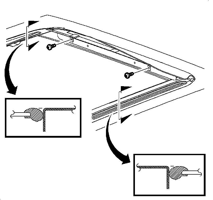 4. Tighten the sunroof window adjustment screws to 5 Nm (44 lb in).