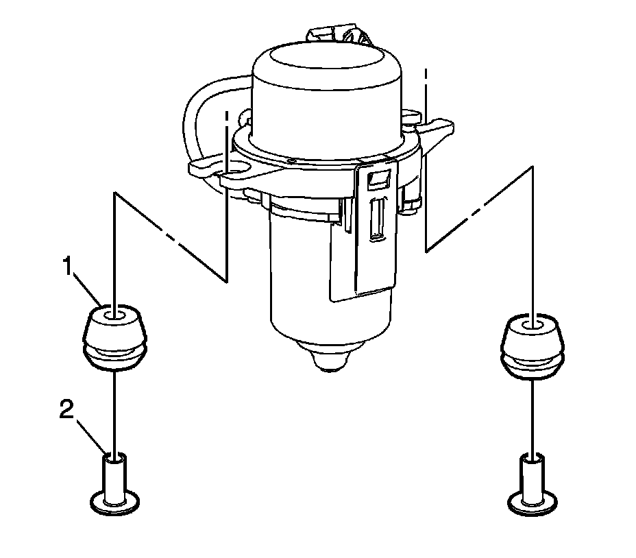 2. If removed, install the power brake booster auxiliary pump insulators (1) and sleeves (2).