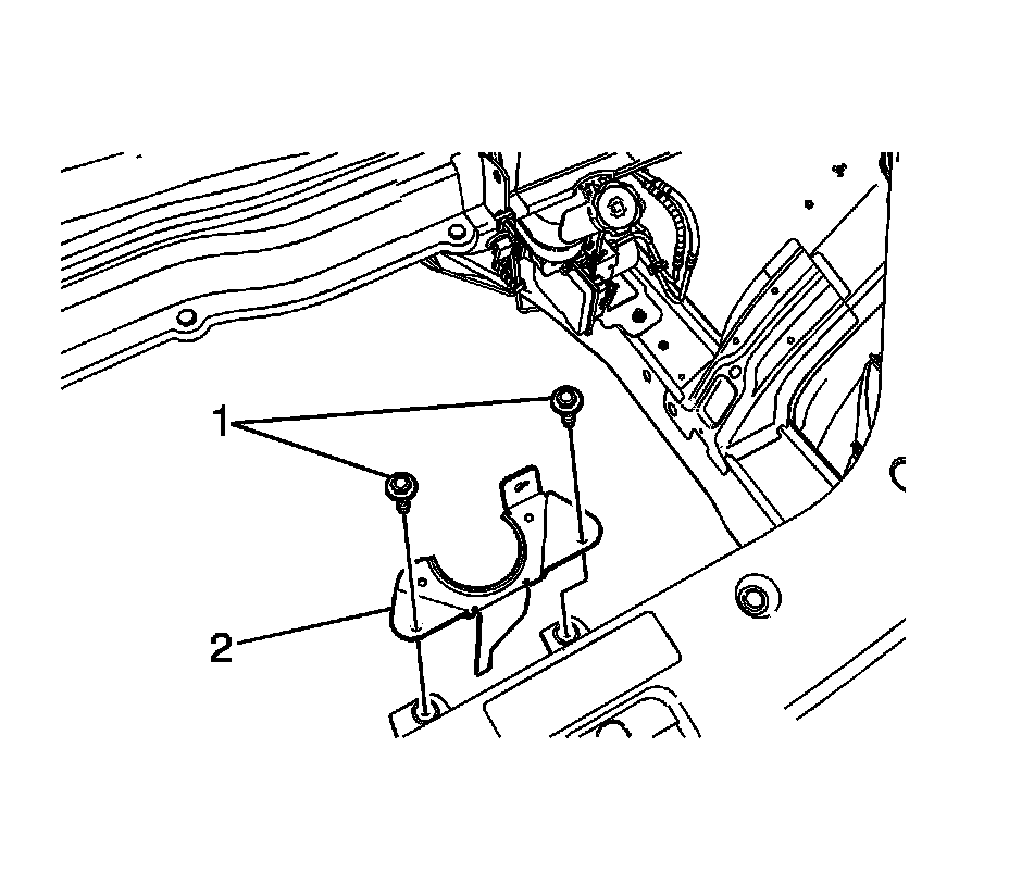 1. If removed, install the power brake booster auxiliary pump bracket bolts (1) and bracket (2) and tighten the bolts to 10 Nm (89 lb in).