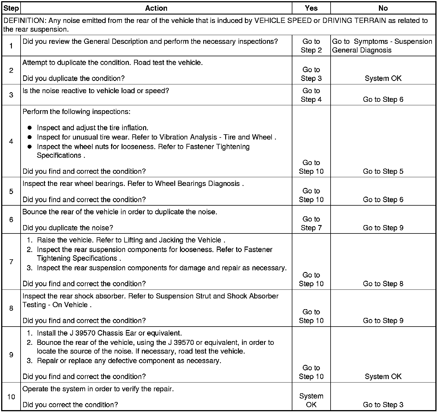 Noise Diagnosis - Rear Suspension