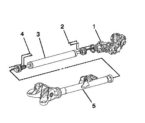 Inspect for loose or missing propeller shaft-to-flange bolts (2) and (4). Tighten or replace as necessary. Refer to Propeller Shaft Replacement (Service and Repair).