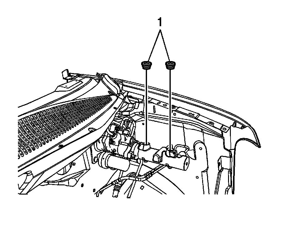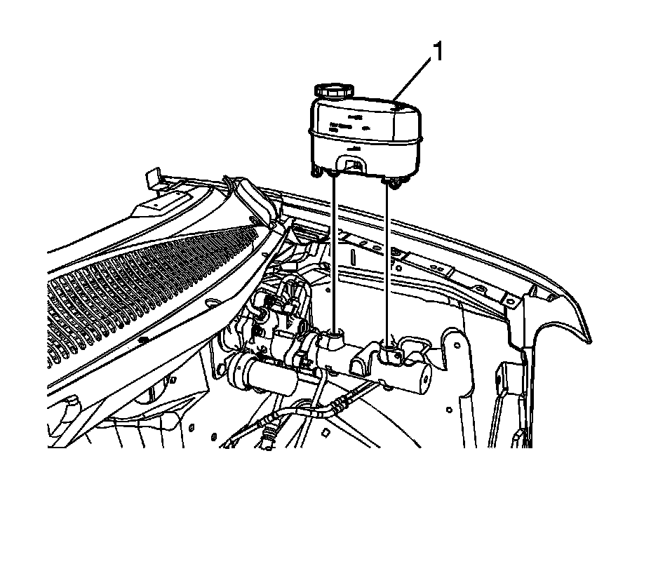 1. Lubricate the master cylinder reservoir seals (1) and the outer surface area of the reservoir-to-housing barrels with GM approved brake fluid from a clean, sealed brake fluid container.