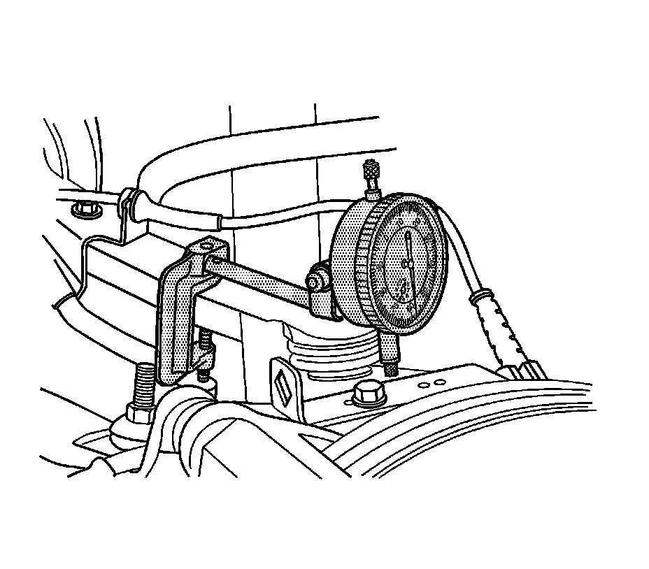 4. Install the J 8001 - dial indicator, or suitable dial indicator, to measure the vertical lash in the ball joint.