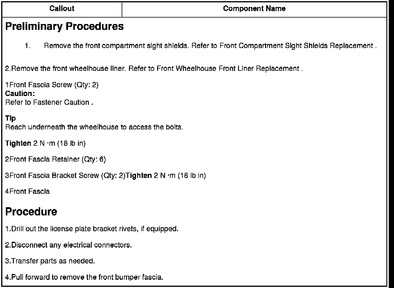 3Front Fascia Bracket Screw (Qty: 2)Tighten 2 N �m (18 lb in)