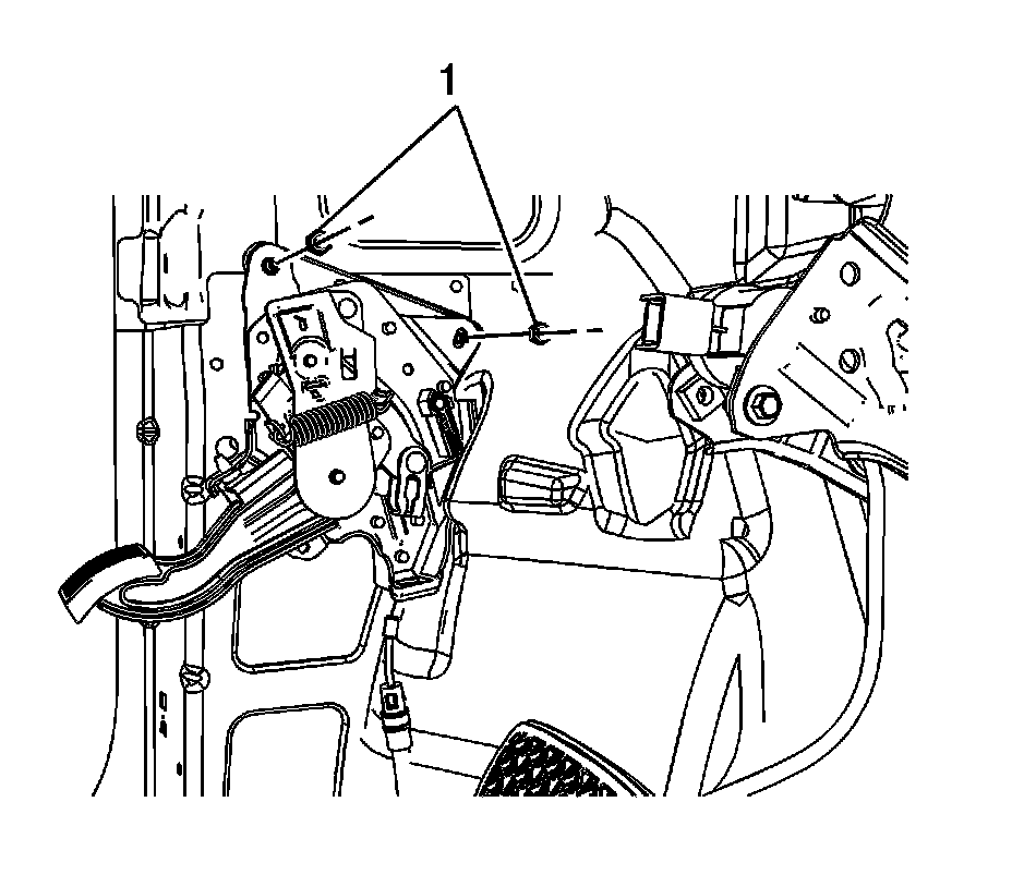 2. Install the 2 upper park brake pedal nuts (1).