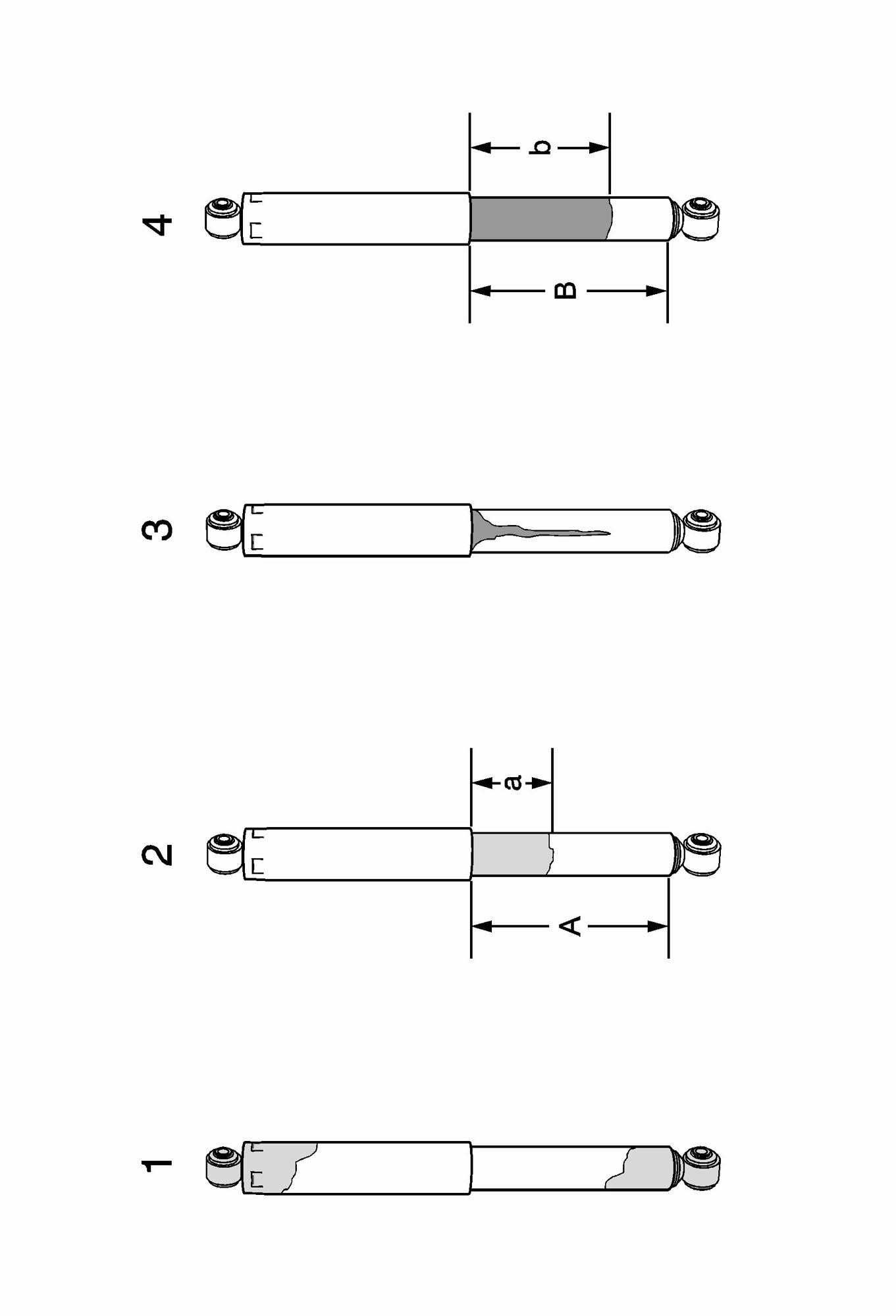 3. Visually inspect each of the shock absorbers for external fluid leaks. Refer to the following conditions 1, 2 , 3 , and 4 for visual inspection.