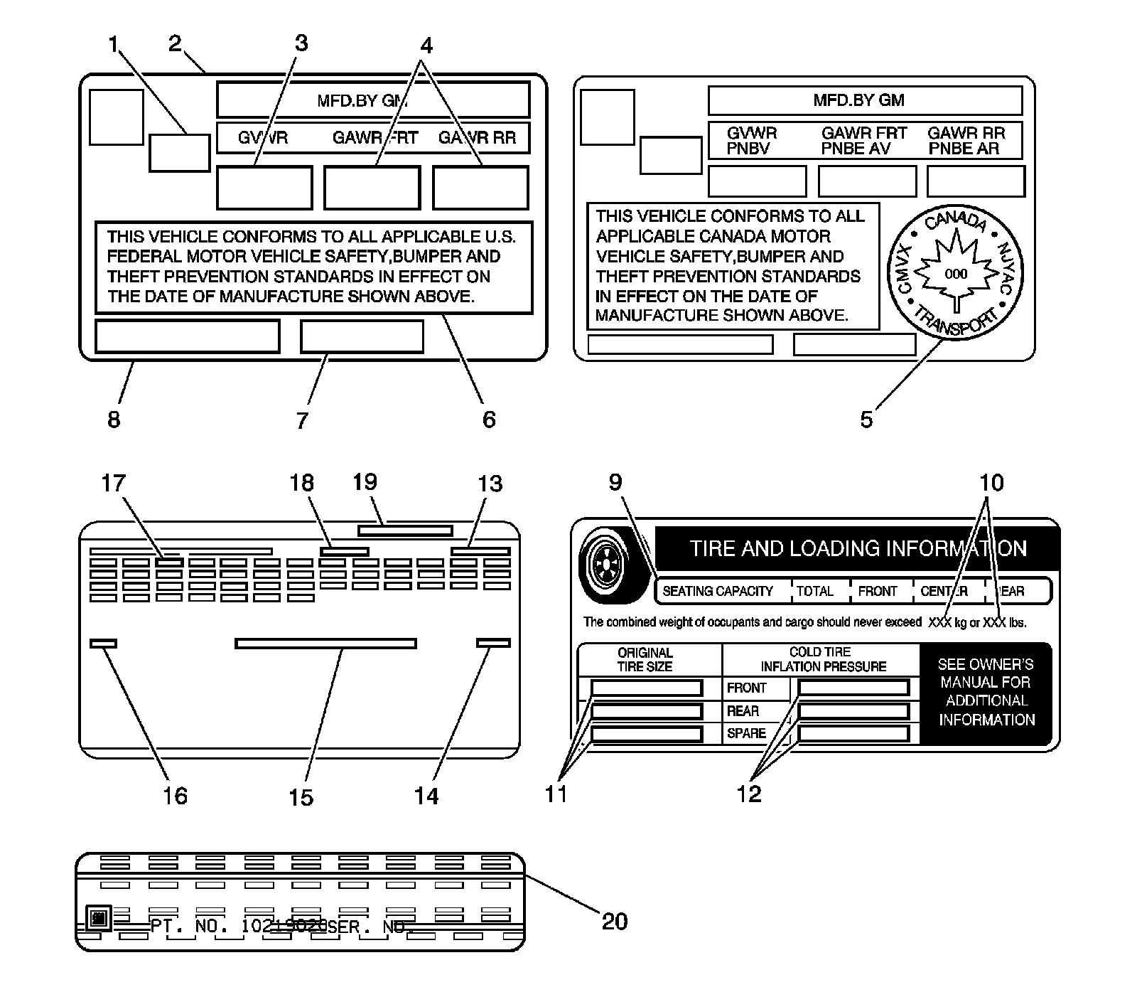 Vehicle Certification, Tire Placard, Anti-Theft, and Service Parts ID Label