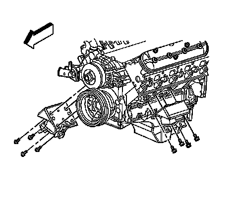 2. Remove the starter. Refer to Starter Replacement (Diesel) Starter Replacement (Diesel)Starter Replacement (V8) Starter Replacement (V8)Starter Replacement (V6) Starter Replacement (V6).