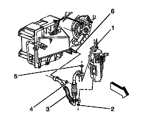 6. Remove the evaporator outlet hose retaining nuts (4, 5).