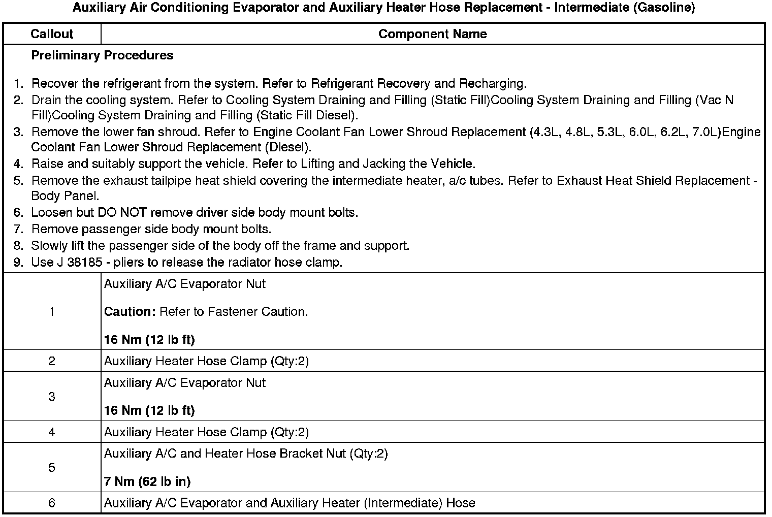 Auxiliary Air Conditioning Evaporator and Auxiliary Heater Hose Replacement - Intermediate (Gasoline)