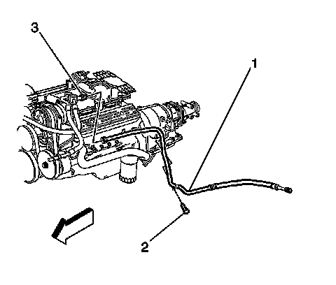 3. Install the bolt retaining the hose (1) to the transmission bracket and tighten to 5 Nm (44 lb in).