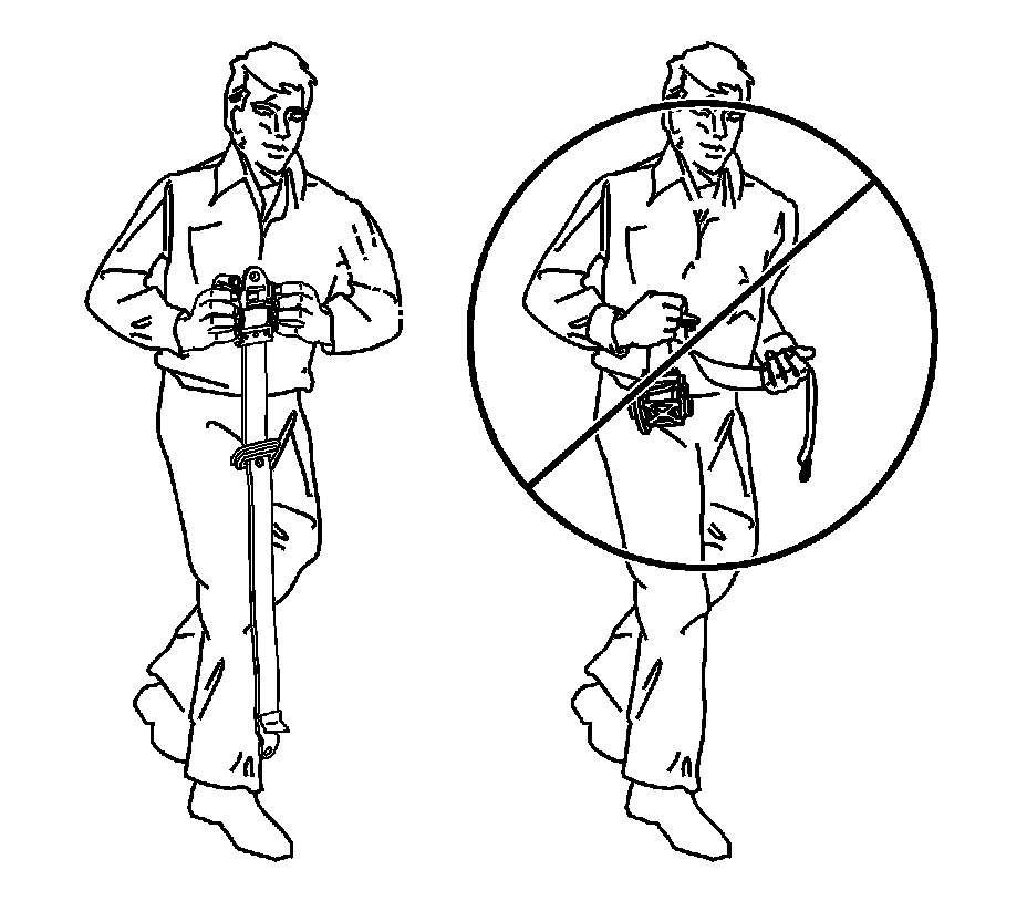 5. When carrying a seat belt pretensioner to the deployment area, keep fingers clear of the seat belt webbing.