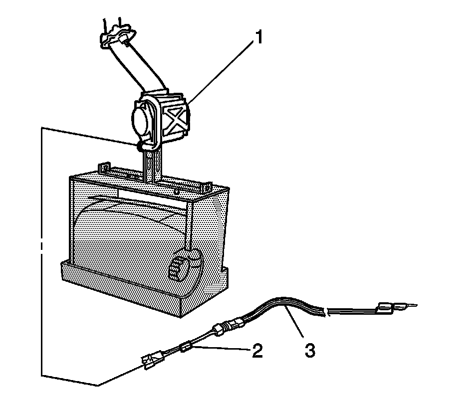15. Connect the seat belt pretensioner connector (1) to the adapter (2) on the deployment harness (3).