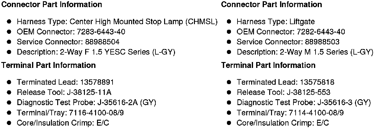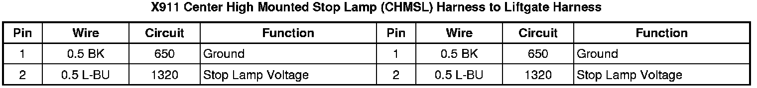 X911 Center High Mounted Stop Lamp (CHMSL) Harness to Liftgate Harness