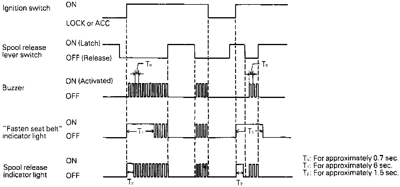 If the spool release lever is pulled with a lapse of approximately 6 seconds after the ignition switch has been turned ON, buzzer sounds intermittently.