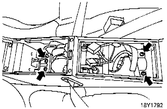 Remove the inner box cover and remove the rear console box attaching screws shown. Then, remove the rear console box.