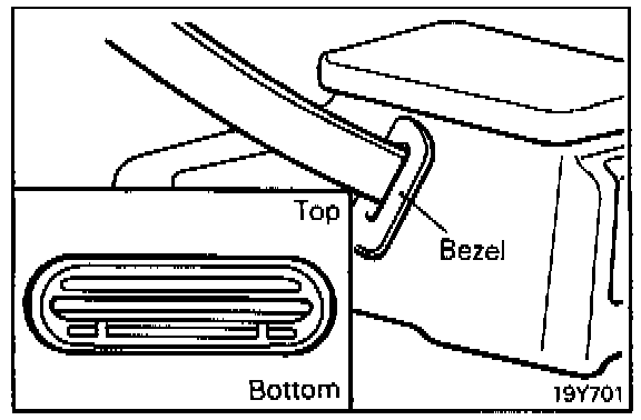 When passing the shoulder belt out through the bezel of console box after the rear console box has been installed, ensure that the bezel is positioned with correct top-to-bottom orientation and the belt is not twisted inside the console box.