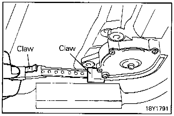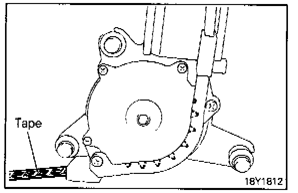 Raise the claw of the outer casing (B) and disconnect the outer casing (A) from the tape guide. Then, with the tape pulled a\\ the way out, remove the outer casing (B).