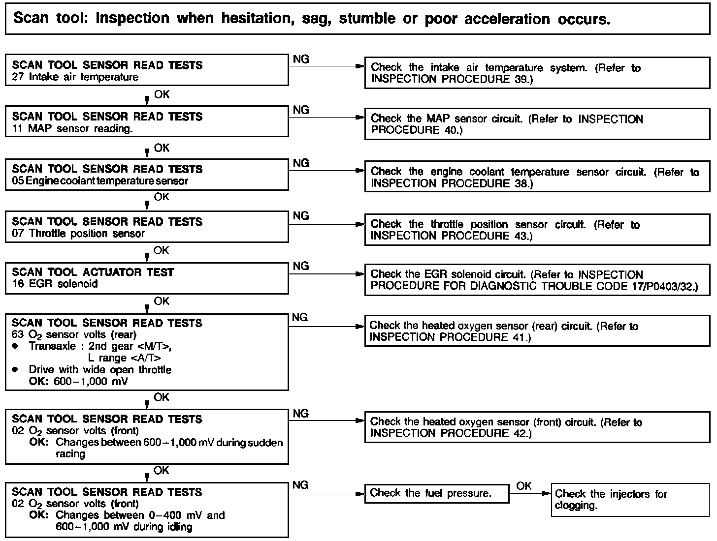 Scan tool: Inspection when hesitation, sag, stumble or poor acceleration occurs.