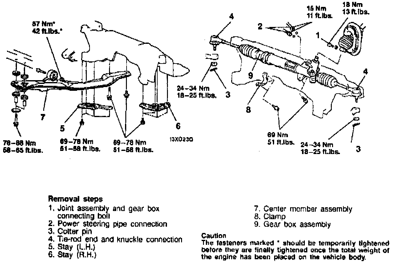 Fig. 9 Center Member & Power Steering Gear Replacement: