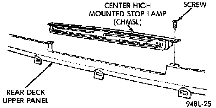 4. Remove screws holding CHMSL to rear deck upper panel.