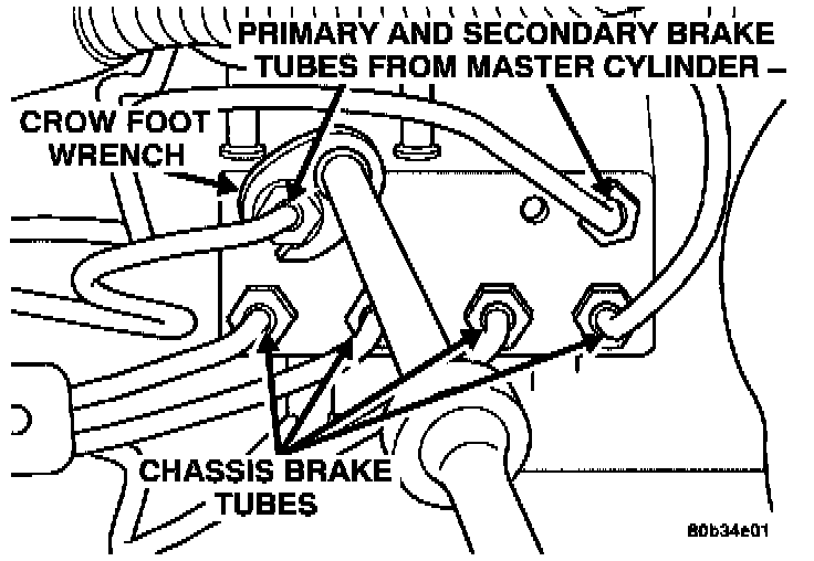 8. Remove the primary and secondary brake tubes coming from the master cylinder, at the HCU, using a crow foot wrench.