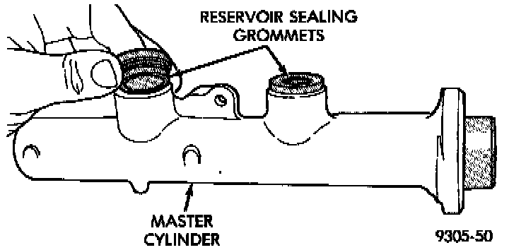 1. Install new housing-to-reservoir grommets in master cylinder housing.